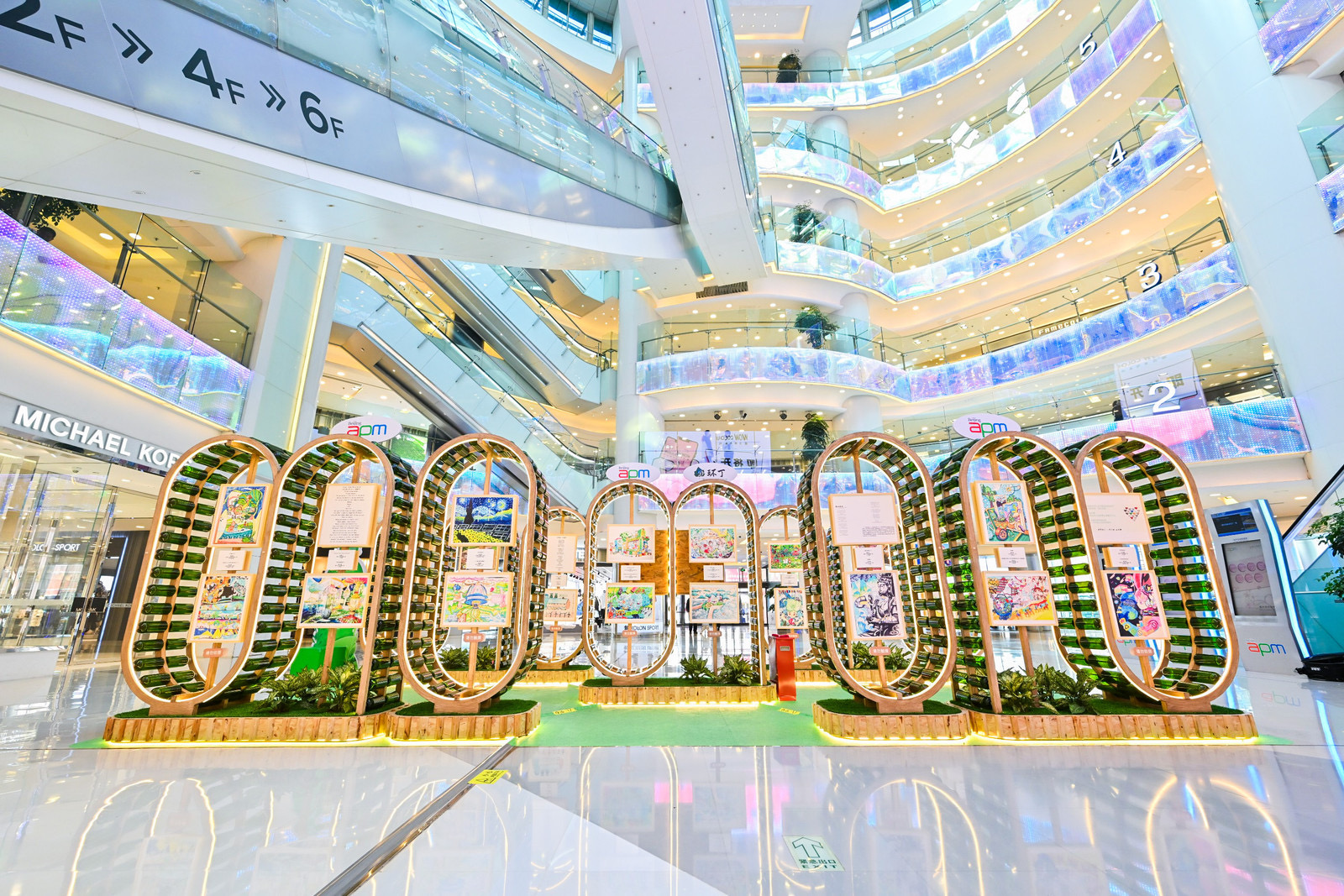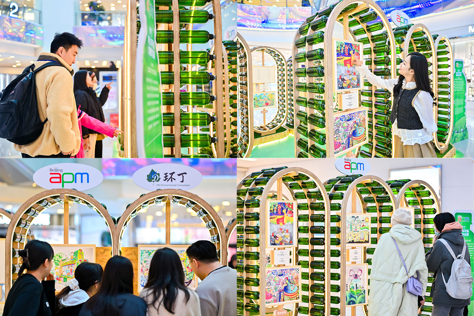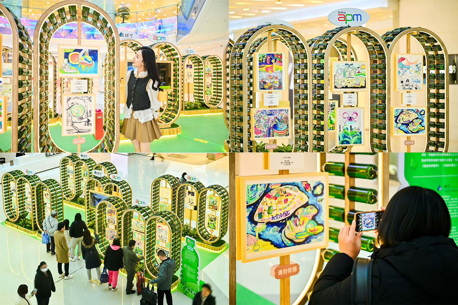 每一幅都有精彩创意,每一件都是匠心独运。在北京apm展陈的环保之瓶,用绿色玻璃瓶搭建的「艺术空间」,满眼绿意为城市注入一股活力。绚烂的色彩、奇趣的造型,一眼就能吸引住来往路人的视线!